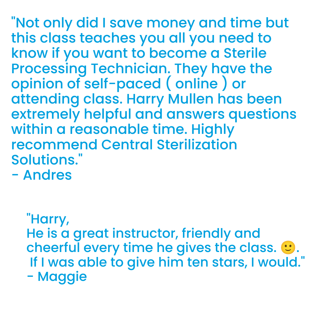 In Person Sterile Processing Class. Learn Sterile Processing with an instructor.