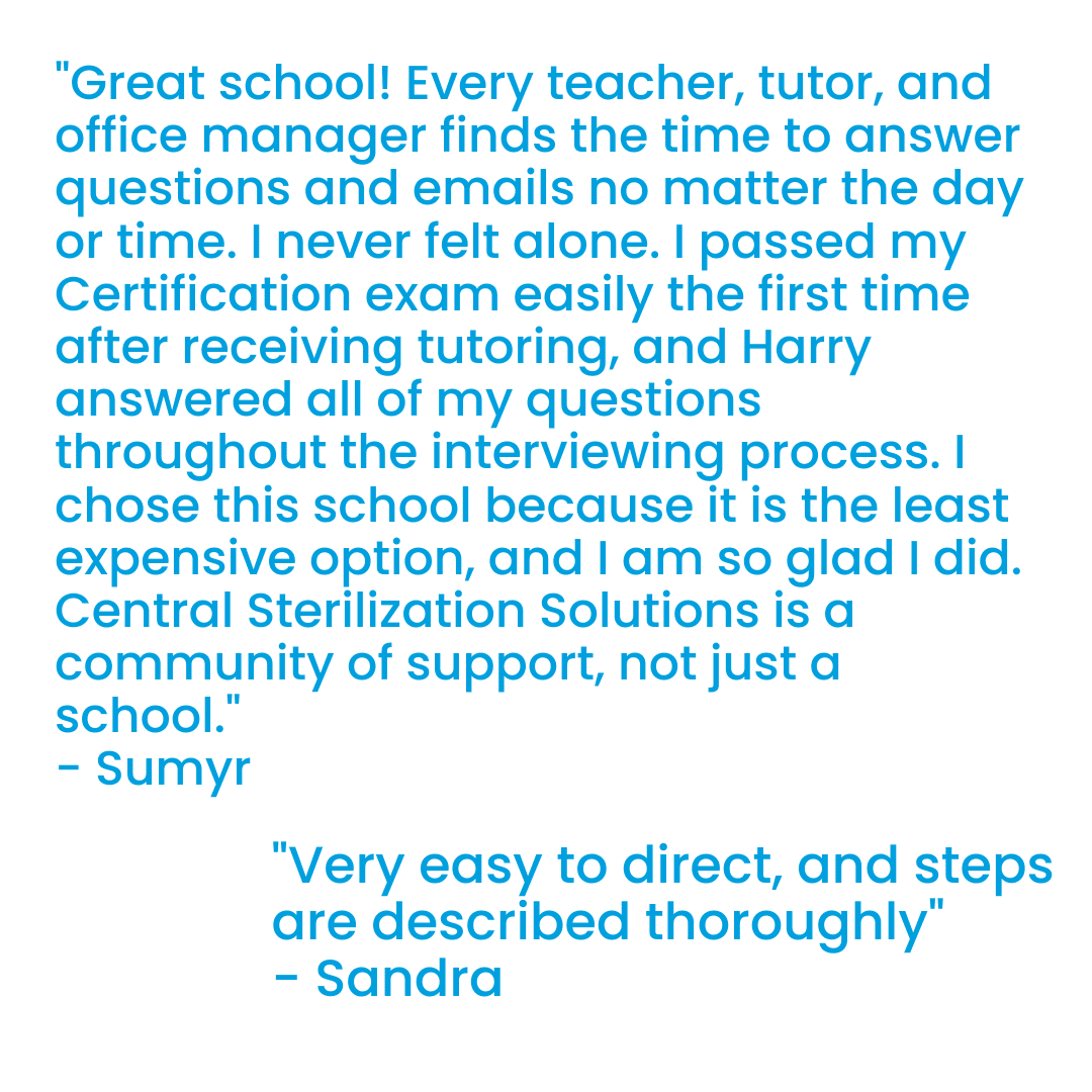 Find out why Central Sterilization Solutions is leading the way with SPD Education. Talk with our Admissions Team to learn more about our program.